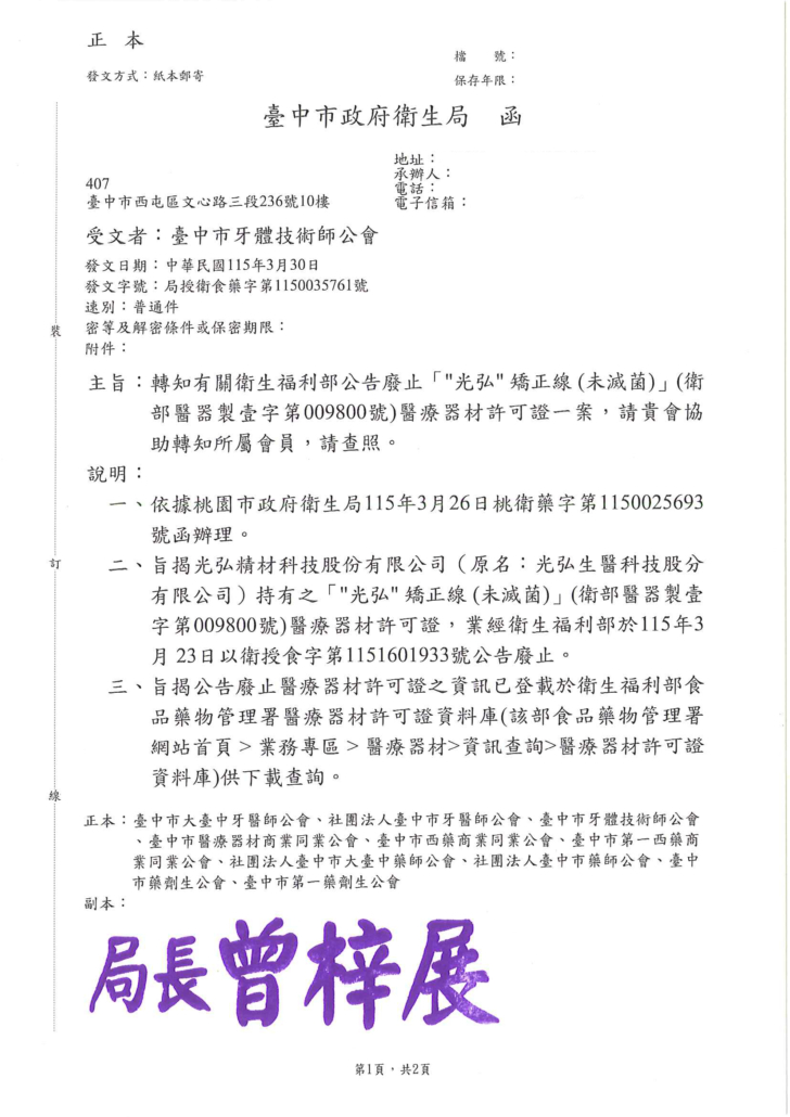 轉知-臺中市政府衛生局-局授衛食藥字第1150035761號